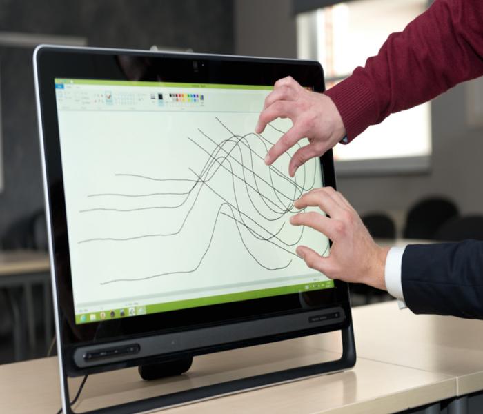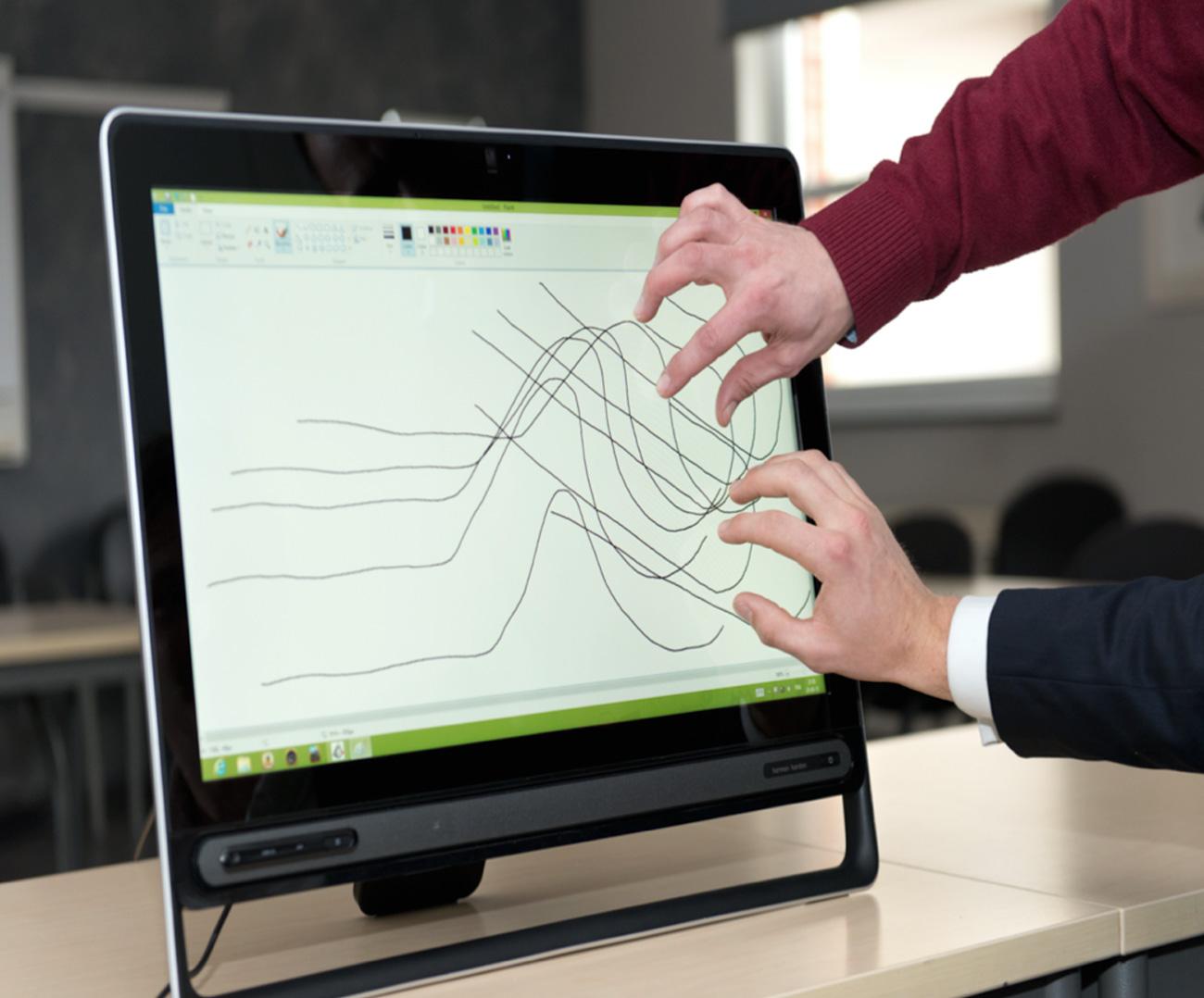 Внешнее стекло сенсорных экранов – любых устройств от мобильных телефонов до навигационных систем и информационных табло – представляет собой стекло с токопроводящим покрытием. Данная технология позволяет использовать одновременно не более двух пальцев или «точек касания», а ее масштабирование на большие экраны (>20 дюймов) с мультисенсорными возможностями оказывается крайне затратным.