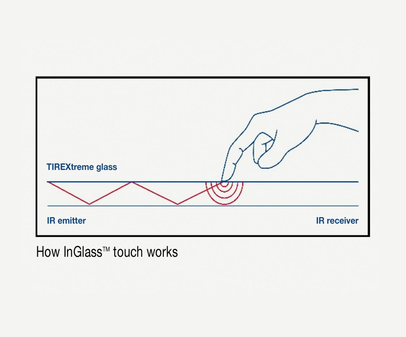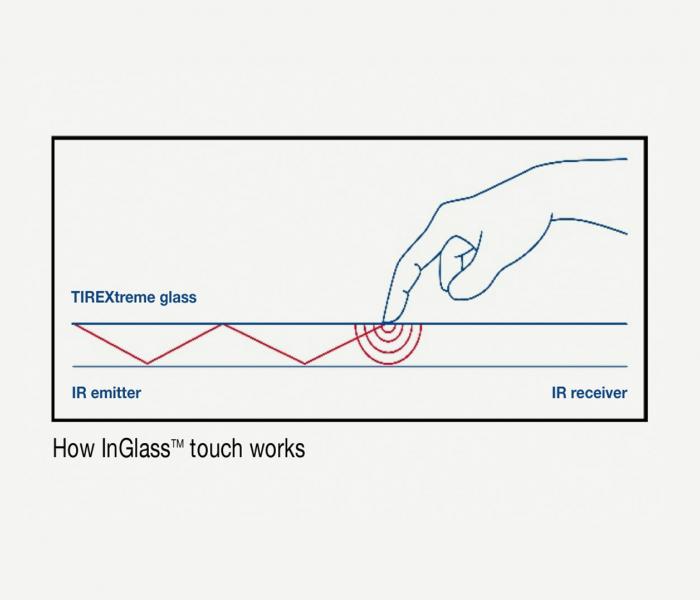 Созданная шведским клиентом AGC технология обеспечивает многоточечное распознавание касаний без необходимости нанесения на стекло токопроводящего покрытия. Их умная система использует невидимое глазу инфракрасное излучение для фиксации различных точек касания. Инфракрасное излучение проецируется поперек стекла и при контакте с наружной поверхностью возникает обратная связь. Инфракрасная система способна распознавать одновременно до 80 точек касания и может масштабироваться для использования на самых широкоформатных экранах с диагональю до 100 дюймов.