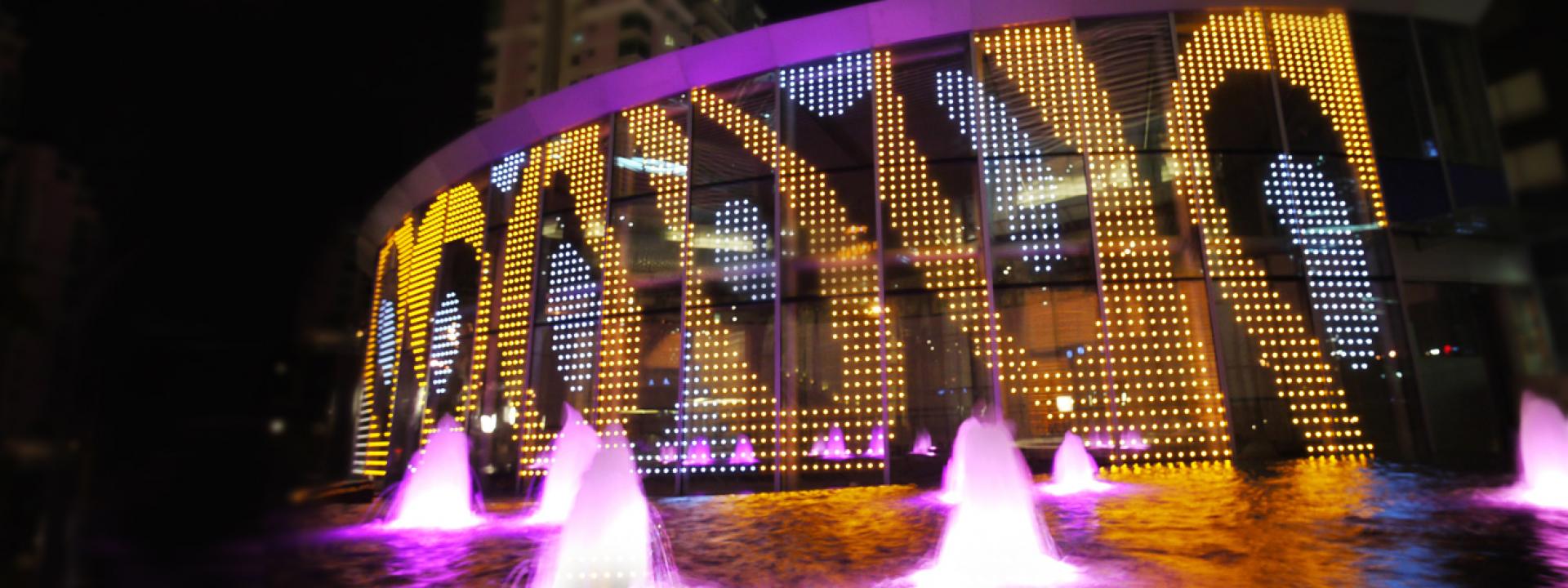 Vrstvená bezpečnostní skla, v nichž jsou osazeny LED diody bez viditelných vodičů, oživují fasády, na nichž se tak s příchodem noci objevují nejrůznější barevné nápisy a obrazce, nebo se mění na obří obrazovky s obrazovou animací. V denním světle se stávají opět transparentní.