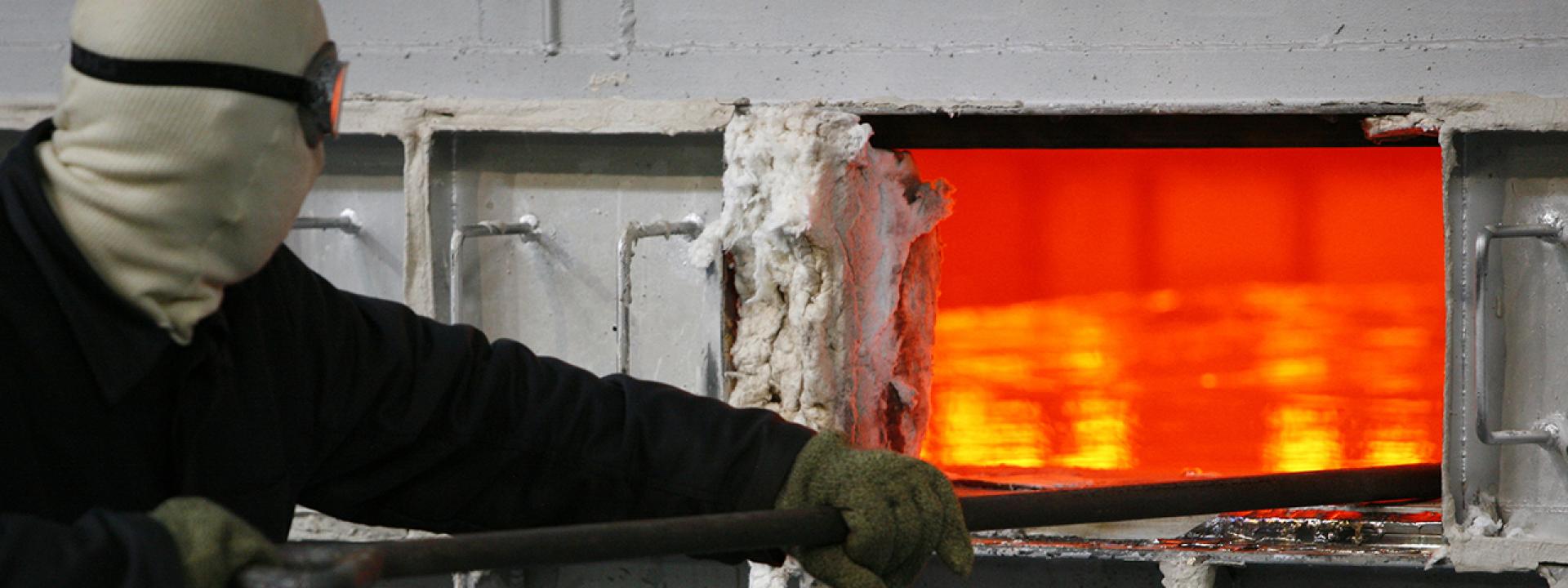 The basic principle of the float glass process is to mix the raw materials, melt them in the furnace and pour the molten glass onto a bath of molten tin. The combustion in the furnace uses air and natural gas. The glass solidifies as it floats on the tin bath. Sometimes coatings can be applied on the glass at the end or just after the tin bath. Subsequently, the glass ribbon passes on to an annealing zone where it cools down gradually while being carried on rollers. At the end of the annealing zone the glass is cut into sheets.