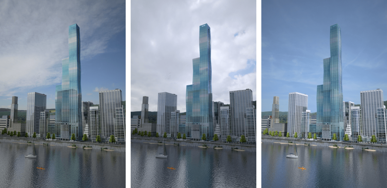 Photos: Rendering pictures of the Vista Tower in its Chicago environment, as produced by the CoD visualisation software